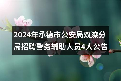 【2024年承德市公安局双滦分局招聘警务辅助人员4人公告】相关岗位: